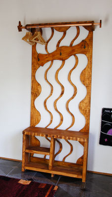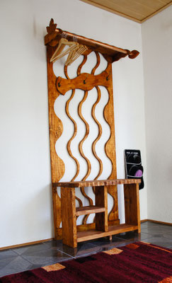 Richtet man eine Ferienwohnung ein, möchte man, daß die Gäste sich von Anfang an wohl fühlen. Zu diesem Zweck entwarf und gestaltete ich diese sehr individuelle Garderobe.