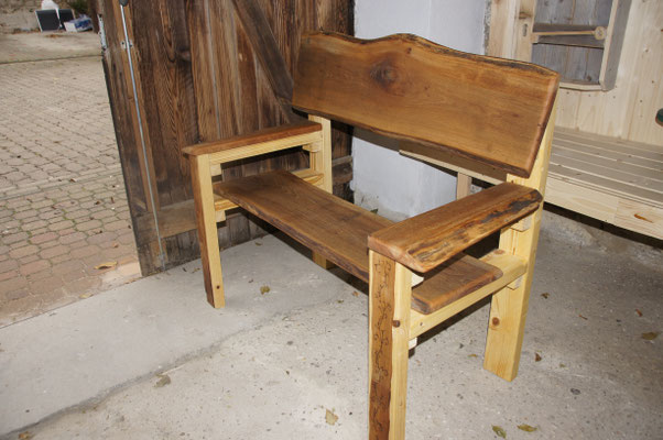 Nach viel Schleifarbeit entsteht aus einem alten Eichenbrett folgendes Bänkchen. Eignet sich hervorragend als Sitzgelegenheit z.B. auf niedrigen Mauern.