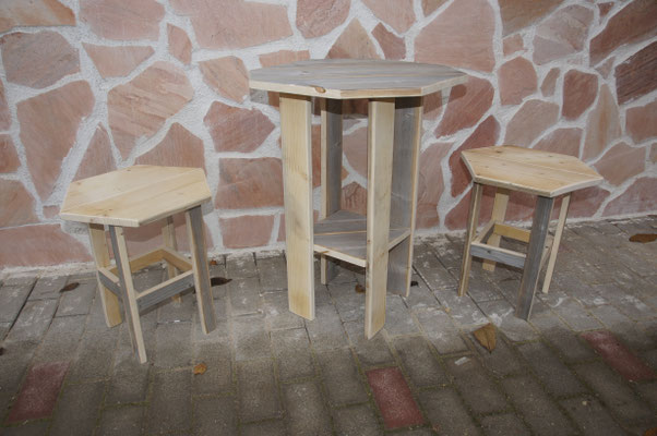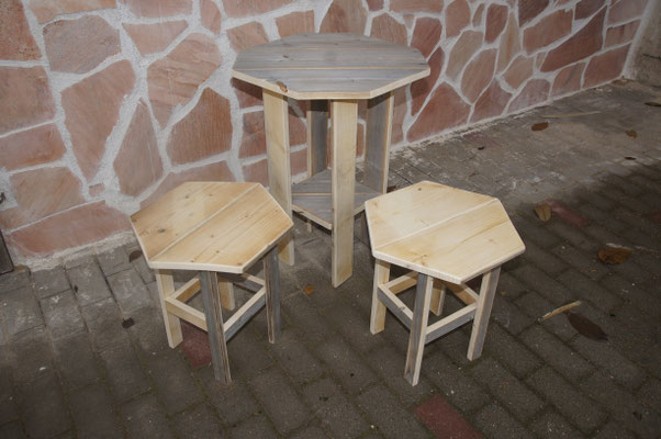 Bei wenig Platz auf dem Balkon oder in der Zimmerecke empfiehlt sich dieses niedliche Kaffeetischchen mit passenden Sitzhockern ;-)