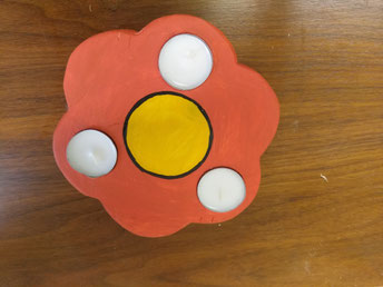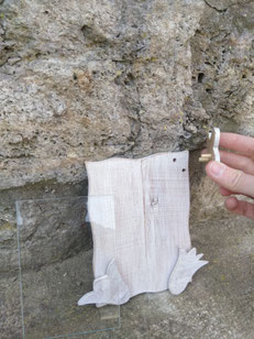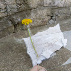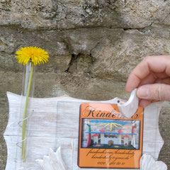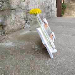 Bilder zwischen die beiden Glasscheiben stecken und mit dem Blümchen fixieren.