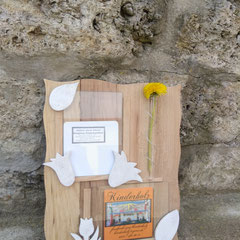 Auch hier kommt meine einzigartige "Stecktechnik" zum Bilderwechseln zum Einsatz: Blätter herausnehmen, Gläser nach oben bzw. zur Seite herausschieben, Bild dahinter und Blätter feststecken. Ein kleines Blümchen setzt einen farbenfrohen Akzent.