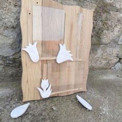 Die folgenden Produkte sind aus Ulmen-und Eichenholz gefertigt, naturbelassen, mit Leinöl behandelt oder mit handelsüblichem Weißlack bemalt und im Vintage-Look gestaltet.