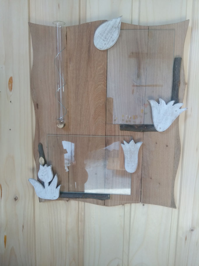 Wandbilderrahmen für 2 Bilder 10,5 x 15cm, Hoch- und Querformat inklusive Blumenväschen.
